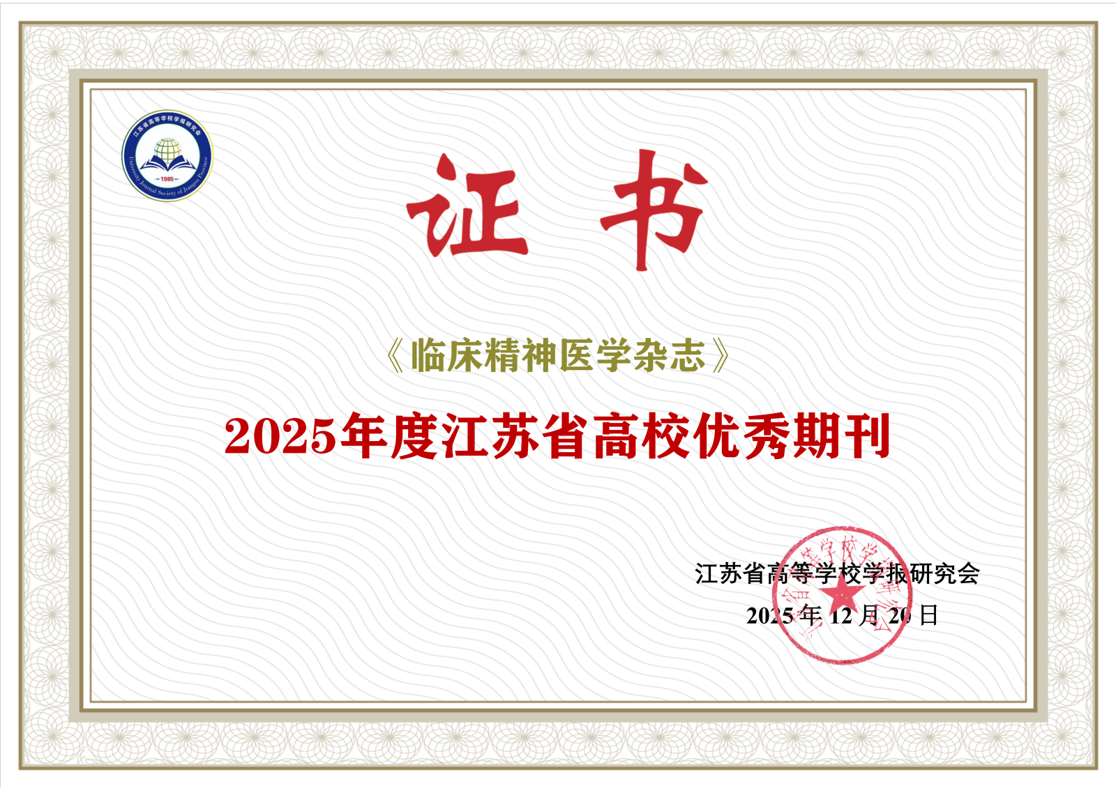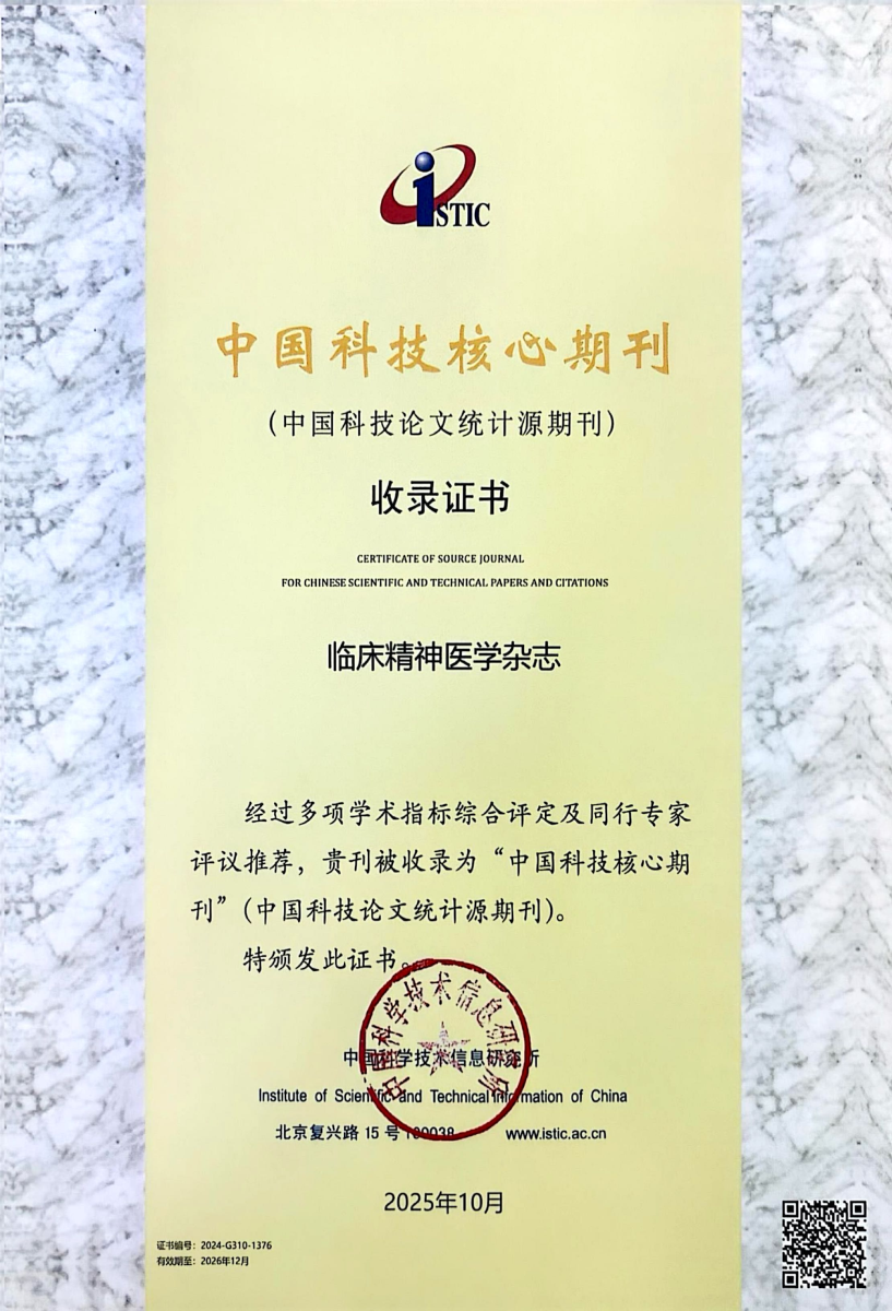 尊敬的读者、作者、各位专家同道: 岁月不居,时节如流。2025年,《临床精神医学杂志》在各界同仁的关心与支持下,继续秉承“突出临床,注重实用,面向基层”的办刊宗旨,扎实推进期刊质量建设与学术传播,取得了一系列令人鼓舞的成绩。 本刊于1999年即被列入中国科技核心期刊(中国科技论文统计源期刊)。2006年被美国化学文摘(CA)收录。2025年度中国科技期刊引证报告,期刊影响因子稳居精神科期刊前列,反映了本刊在学术质量与引用贡献上的稳健表现。同时荣获 “优秀传播实践期刊”(维普资讯)与 “江苏省高校优秀期刊” 等,体现了期刊在内容传播与平台建设方面的持续进步。