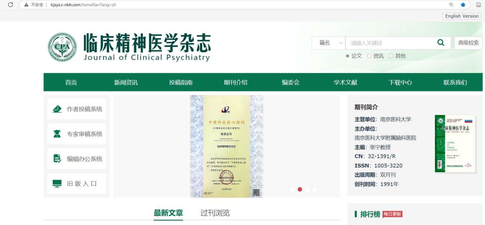 登录方式不变,您仍可通过原网址访问:http://lcjsyx.c-nbh.com或通过本刊主办单位—南京脑科医院官方网站(http://www.c-nbh.com),点击《临床精神医学杂志》链接进行登录。